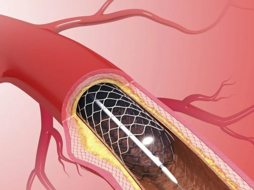 A stent is a small metal mesh tube placed inside the blocked artery during angioplasty. It acts like a support system that keeps the artery open, allowing smooth and continuous blood flow. Stents significantly reduce the chances of the artery narrowing again.